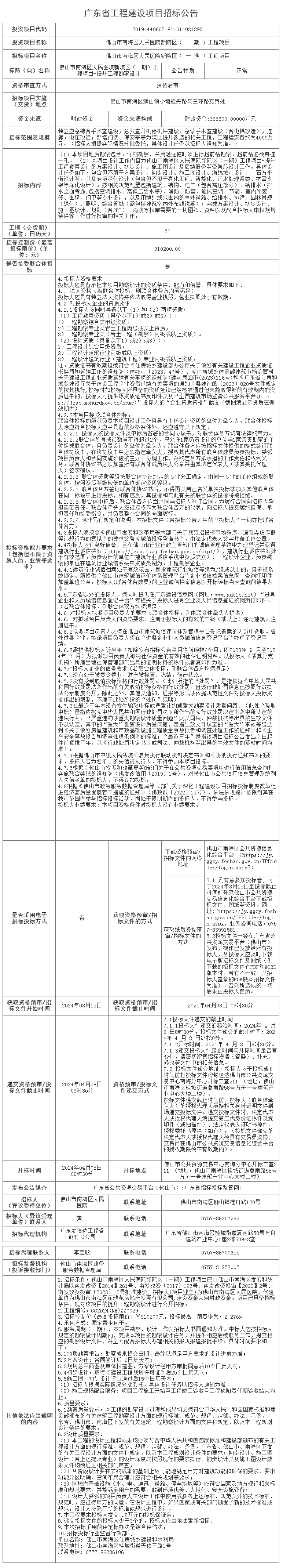 佛山市南海区人民医院新院区(一期)工程项目-提升工程勘察设计招标公告