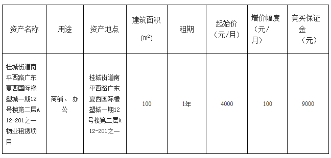 南海桂城街道南平西路广东夏西国际橡塑城一期12号楼第二层A12-201之一物业租赁项目