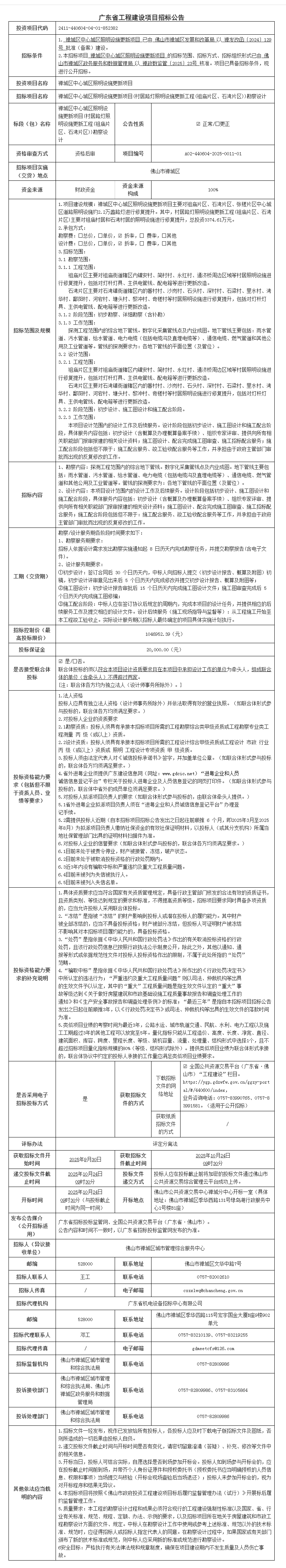 禅城区中心城区照明设施更新项目(村居路灯照明设施更新工程(祖庙片区、石湾片区))勘察设计招标公告