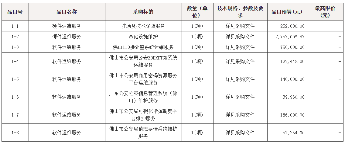 佛山市公安局指挥中心信息化系统集中运维(2025-2026年)招标公告