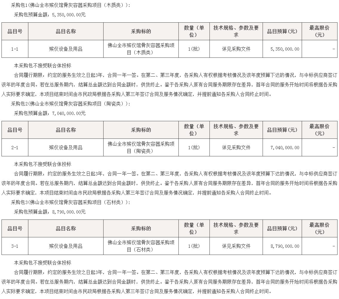 佛山市民政局殡葬服务用品(骨灰容器)集中采购项目招标公告
