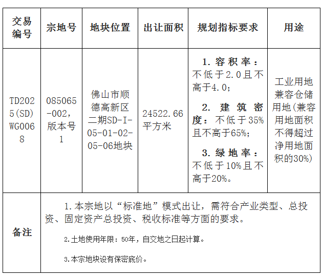 五、有意参与竞买者可于2025年11月17日后登录网上交易系统下载TD2025(SD)WG0068地块的《佛山市顺德区国有建设用地使用权网上挂牌出让文件》。