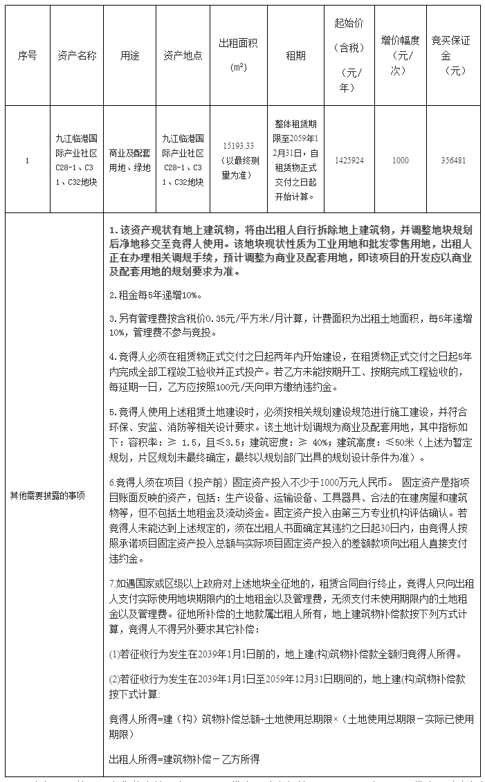 南海九江临港国际产业社区C28-1、C31、C32地块租赁公告