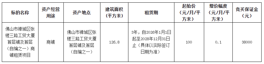 佛山市禅城区张槎三路工贸大厦首层铺及首层(自编之一)商铺租赁项目