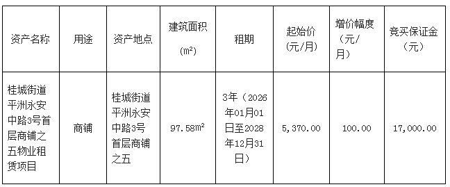 南海桂城街道平洲永安中路3号首层商铺之五物业租赁项目