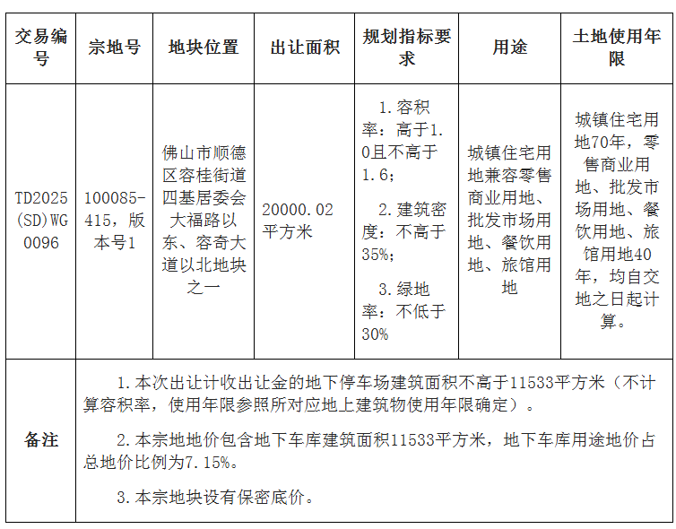 十一、自本次公告起至网上挂牌截止期间,如有关于本地块网上挂牌文件的修改、澄清、说明等将通过网上交易系统、佛山市顺德区公共资源交易中心网站发布,请有意参与竞买者密切留意。其它未尽事宜,详见该地块的交易文件。