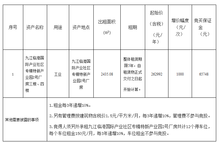 3.本标的物适用于办公、生产、仓储,不适用于危险化学品的存储及高污染行业进驻。