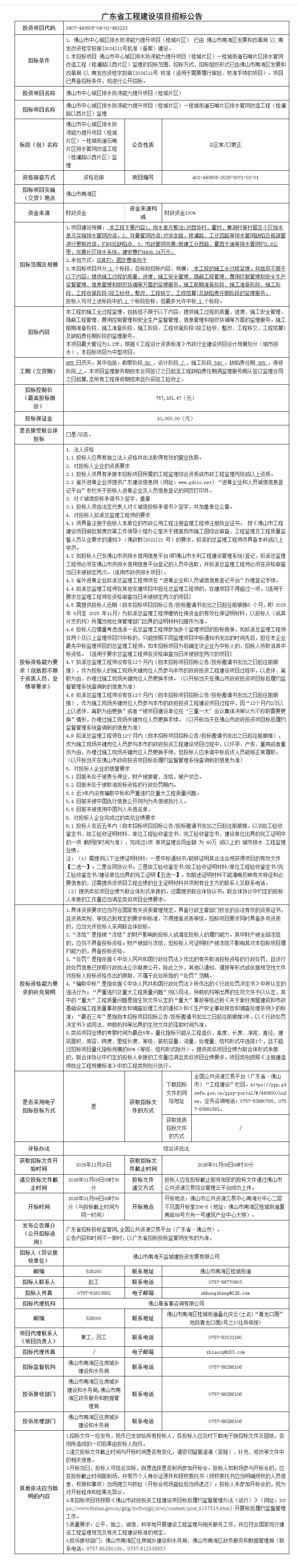 佛山市中心城区排水防涝能力提升项目(桂城片区)—桂城街道石啃片区排水管网改造工程(桂澜路以西片区)监理招标公告