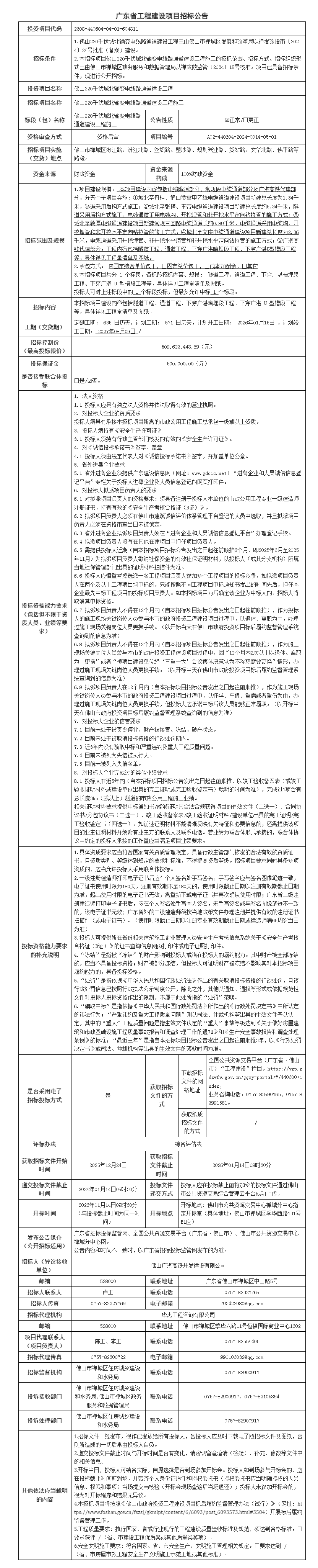 佛山220千伏城北输变电线路通道建设工程施工招标公告