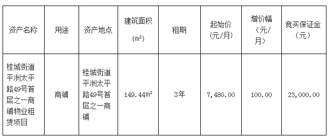 南海桂城街道平洲太平路49号首层之二商铺物业租赁项目