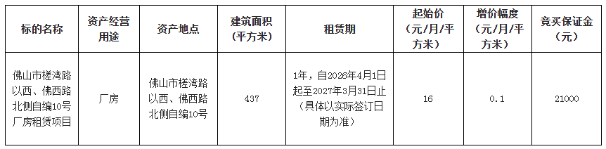 4.产权证照情况:有土地证照(竞买人应充分考虑其风险,一经存入竞买保证金即表示承认、接受本项目的现状,愿意按约定支付租赁价款和遵守租赁合同的约定)。